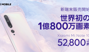 OCNモバイルONEは、Xiaomiのスマホ「Mi Note 10」の取り扱いを開始しました。