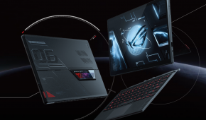 また、単に省略されているだけというのもあり得ますが、メッシュ調のROGマークをあしらうLEDが見当たらず、一方で上位モデルにしか備えられていなかったサブディスプレイを搭載しているようです。