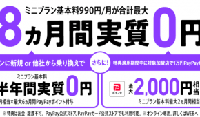 キャンペーン期間中にLINEMOの「スマホプラン」にMNPすると、PayPayポイント1万5000円相当をプレゼント。対象プランの開通日が属する月の4カ月後までに、対象プランを変更しないことが条件。特典は開通日の属する月の5カ月後の上旬に付与予定。