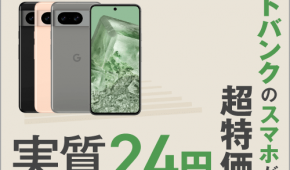注目が最新機種「Google Pixel 8」。価格11万4480円のところ、値引き額3万1800円にて価格8万2680円に。さらにプログラムの残債免除を考慮すると「実質24円」に。 加えて、追加で1万円キャッシュバックもあるとのこと。
