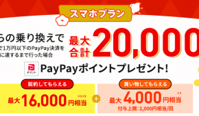 通常3000円相当のPayPayをキャンペーンで増額。スマホプラン20GBの場合1万円相当、ミニプランの場合5000円相当付与するとしています。
