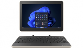 新商品は、ChromeOSとタッチパネル付き10.1型WXGA液晶を搭載したデタッチャブルタイプのChromebook。タブレットを支えるスタンドがない自立型デザインで、スペースをとらず机を広く使えるといいます。ドックからタブレット本体を取りは外して10.1型タブレットとしても使用可能。
