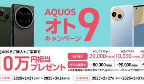 また、ソフトバンクでは「AQUOS R9 pro」発売を記念して、対象期間内に本機を購入の上、応募するともれなくPayPayポイント2万円相当を進呈するキャンペーンを実施。さらに先着1000名の応募者には、別売アクセサリーの「AQUOS R9 pro」カメラリング用アタッチメントとクロスフィルターのセットも進呈するとのことです。