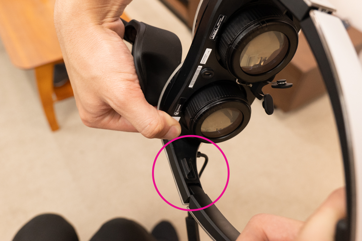 また、競合他社のSteamVR対応軽量HMDへの優位性としては、単に軽いだけではなく付け外しがしやすい仕様により、隙間時間でも気軽に使える点を挙げました。ちなみに筆者が使っているBigScreen Beyondは確かに軽いものの、ストラップの付け外しに少々難儀します。