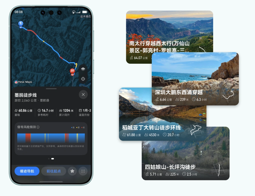 さらにMate 80シリーズ共通の特徴として、「無網通信」と呼ばれるオフライン緊急通信機能を搭載。地上ネットワークや衛星信号に頼らず、700MHz帯を使った専門チーム向けの無網緊急通信や、最大約7km届くという2.4GHz帯の「畅连無網通信」に対応し、災害時に埋没や孤立をした際にも、救援側との連絡手段を確保できるとしています。加えて、北斗衛星メッセージや衛星経由の天気情報取得など、衛星通信機能も備えます。