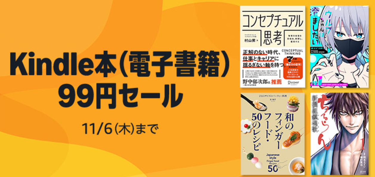 AmazonのKindleストアで、対象の電子書籍が99円になる「Kindle本 99円セール」が開催中です。期間は11月6日(木)23時59分までです。