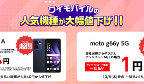 ワイモバイルの「moto g66y 5G」が特価販売中です。