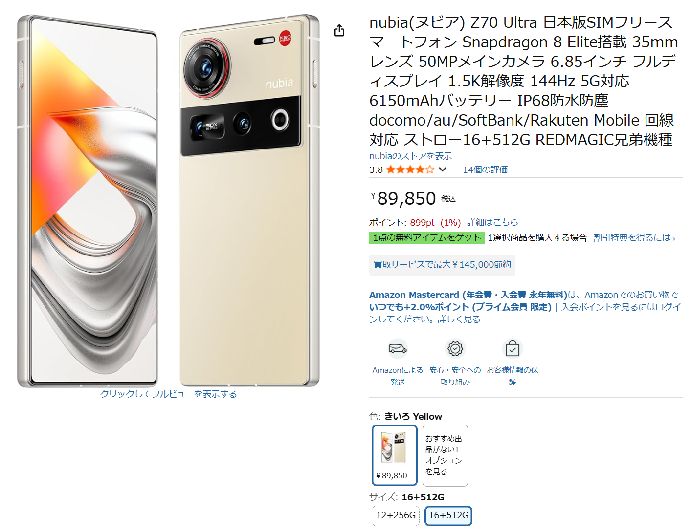 nubiaのフラッグシップスマホ「nubia Z70 Ultra」が、Amazonのブラックフライデーで大きく値下がりしています。