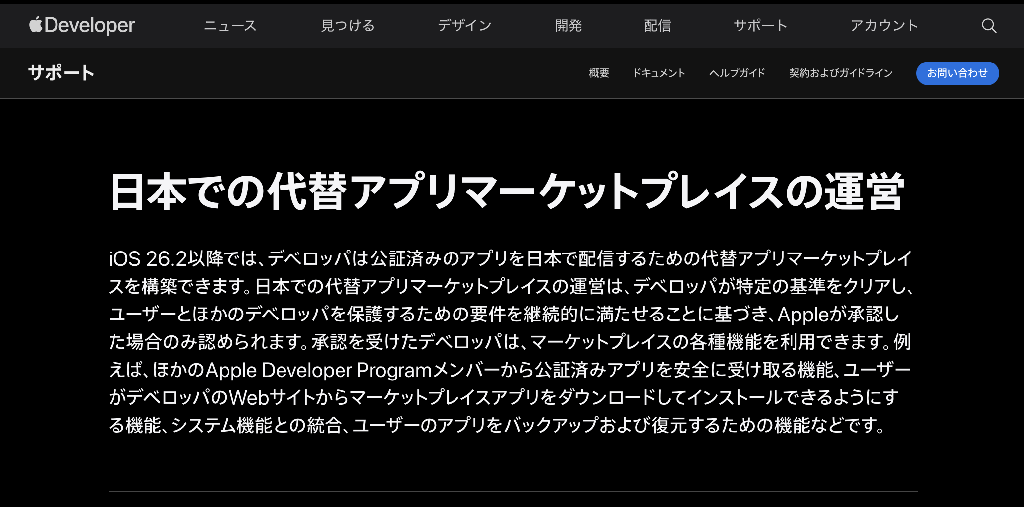 スマホ新法(スマートフォンにおいて利用される特定ソフトウェアに係る競争の促進に関する法律)の施行を受け、Appleが日本で「代替アプリストア(代替マーケットプレイス)」(App Store以外のアプリ配信手段)を利用できる仕組みを提供しました。