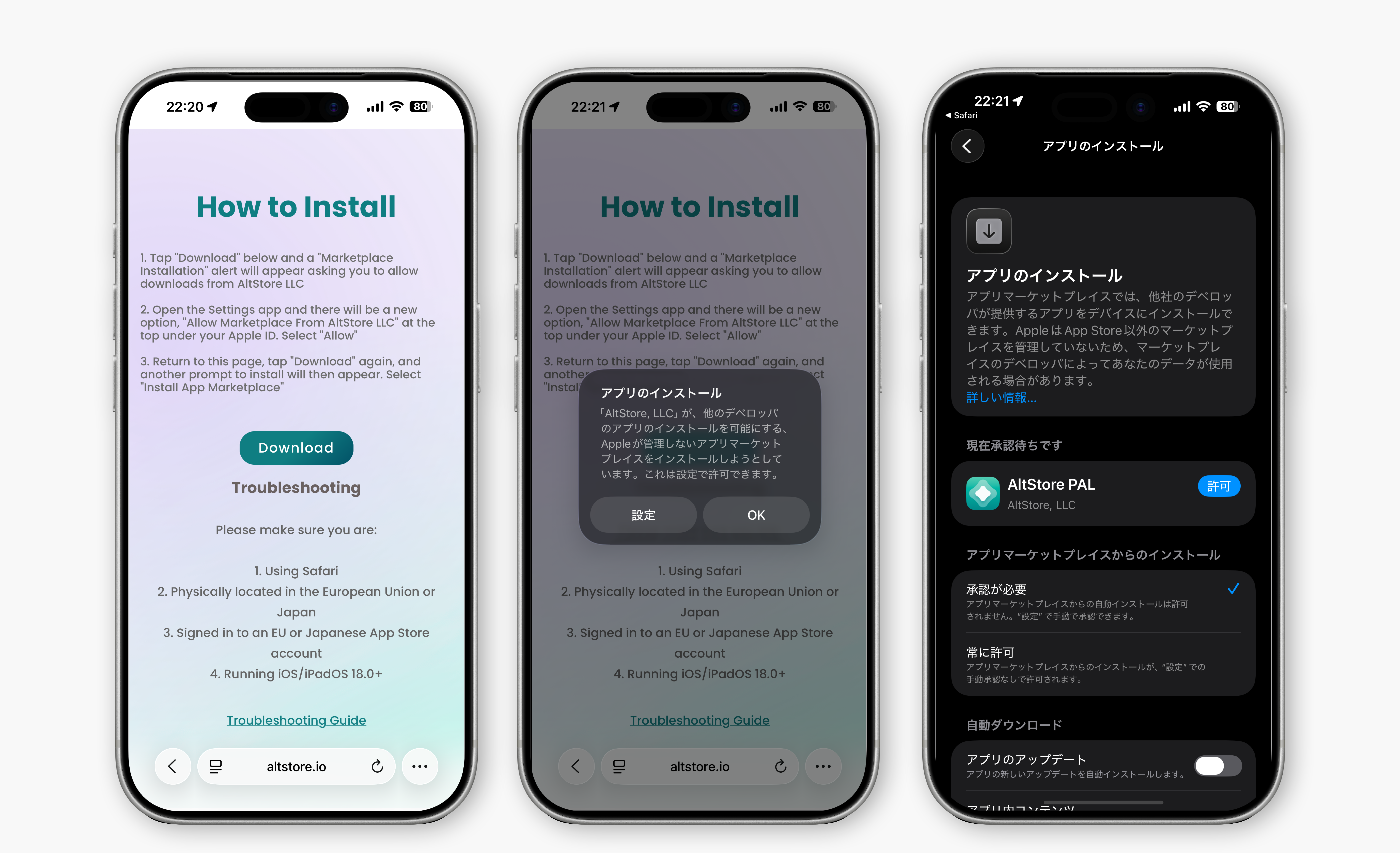 従来のAltStore(PCを使う方式)とは異なり、7日ごとの署名更新(PC接続)は不要です。アプリの更新もストア経由で行えます。