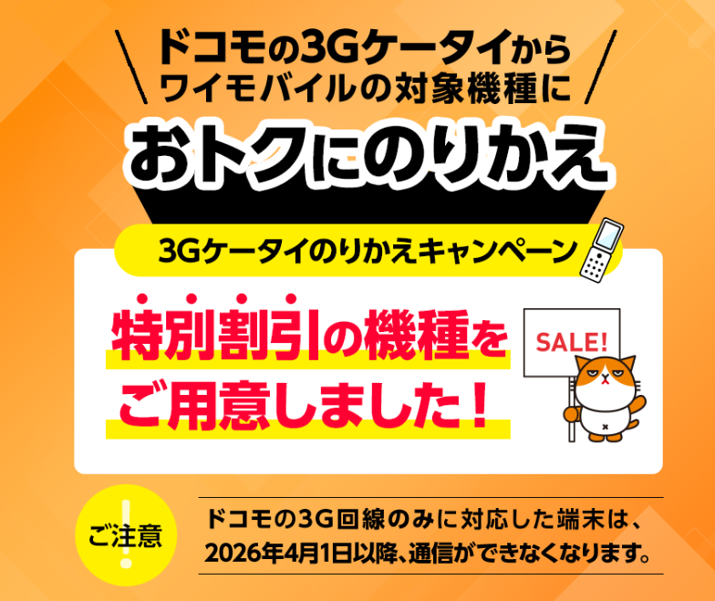 このキャンペーンは、現在NTTドコモの3G回線専用端末を利用しているユーザーが、ワイモバイルの「シンプル3 S/M/L」プランへ乗り換える際に適用されるものです。