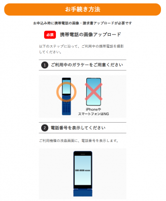 特徴的なのは申し込みの手順で、専用のURLから手続きを行う際に、旧機種で電話番号を表示している様子の写真を提出する必要がある点です。これにより、実際に3G端末を利用しているユーザーであることを確認する仕組みとなっています。