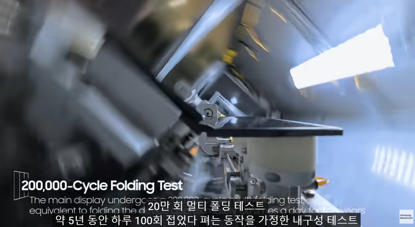 さらに、ロボットアームによる折りたたみ試験では、TriFoldのメインディスプレイに対して20万回のマルチフォールドテストを実施。1日に100回折りたたむペースで約5年間使い続けても耐えられる計算で、Galaxy Z Fold 7と同等の耐久性をうたいます。
