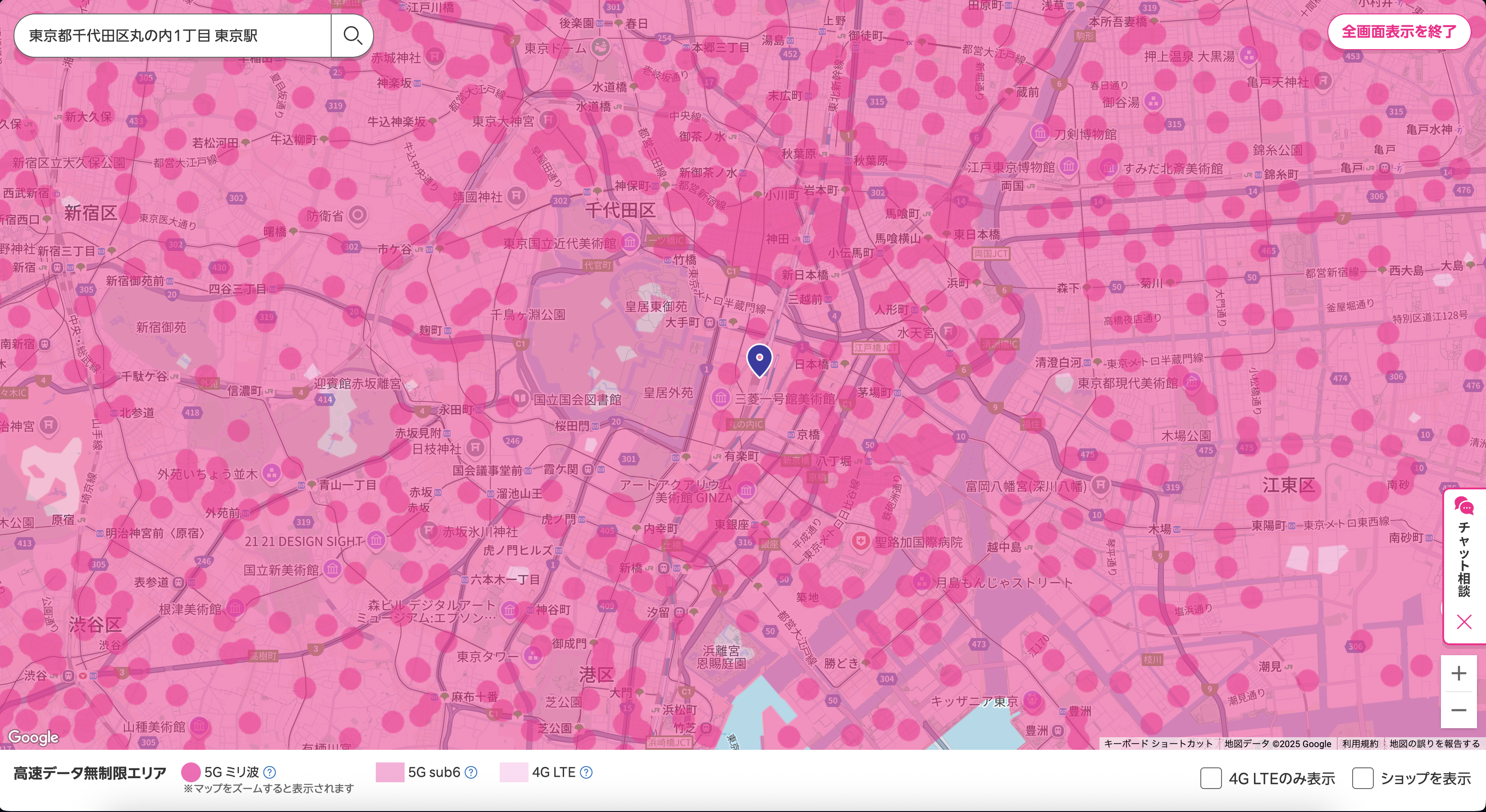 東京駅付近の回線状況(記事執筆時点で撮影)