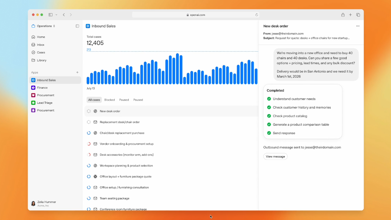 具体的には、データウェアハウスやCRM、チケット管理システム、社内アプリケーションなどを連携させ、AIが参照できる共通の業務情報を構築します。エージェントはファイル操作やコード実行を伴う多段階の作業を担当し、ソフトウェアの不具合の原因究明やデバッグなどの複雑な業務にも対応できると説明しています。日々のやり取りを蓄積して精度を向上させる仕組みも備えており、オープン標準による連携を強調することで、自社製だけでなく独自開発や他社製のエージェントも同じ基盤で管理できるといいます。
