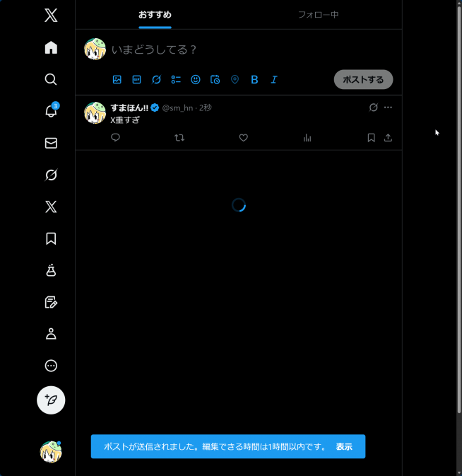 なお、不思議なことに筆者の環境ではなぜか通知欄は見られます。また、プロフィールページも閲覧が可能。時系列TLも閲覧できます。