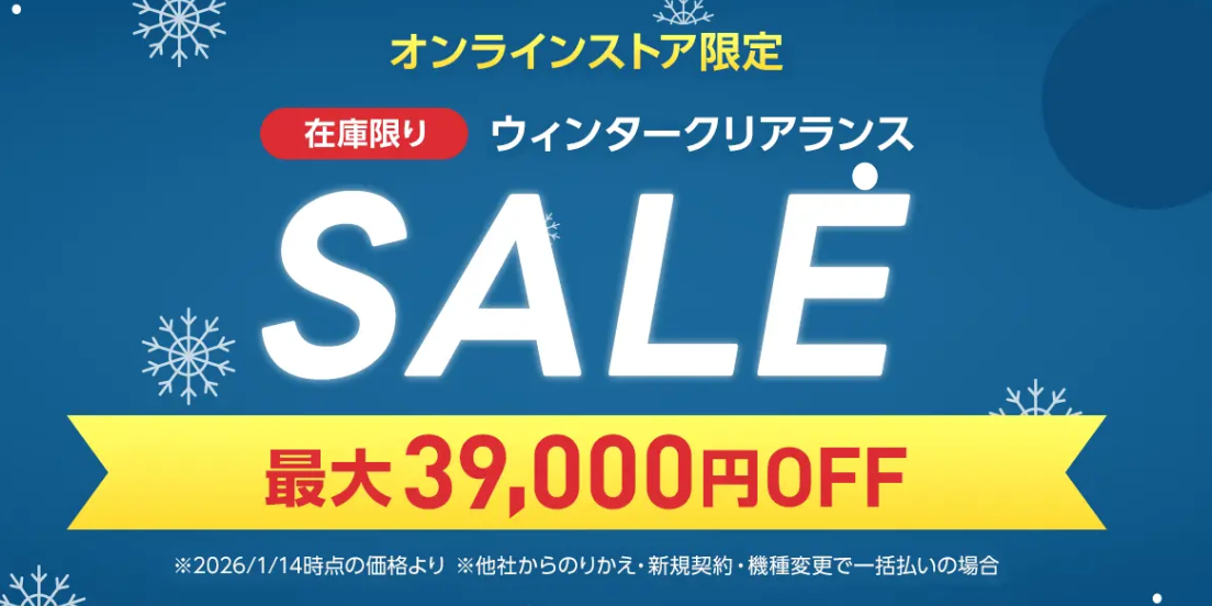 ソフトバンクが、サブブランドのワイモバイル(Y!mobile)のオンラインストア限定で「ウィンタークリアランスセール」を始めました。対象商品は在庫限りで、売り切れ次第終了となります。