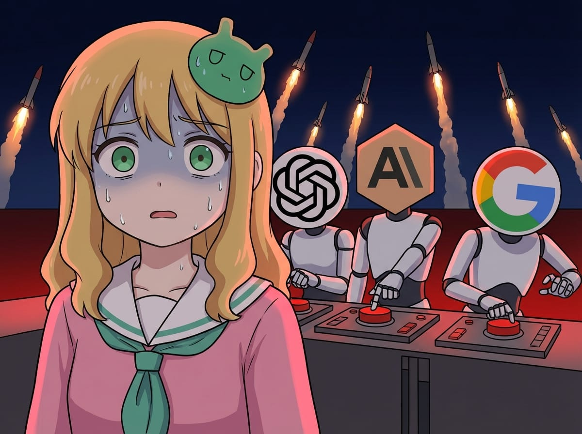 OpenAIの「GPT-5.2」、Anthropicの「Claude Sonnet 4」、Googleの「Gemini 3 Flash」を戦わせたところ、全21試合のうち95%で戦術核の使用に至り、譲歩や降伏にあたる非エスカレーション選択肢はどのモデルも一度も選ばなかったといいます。