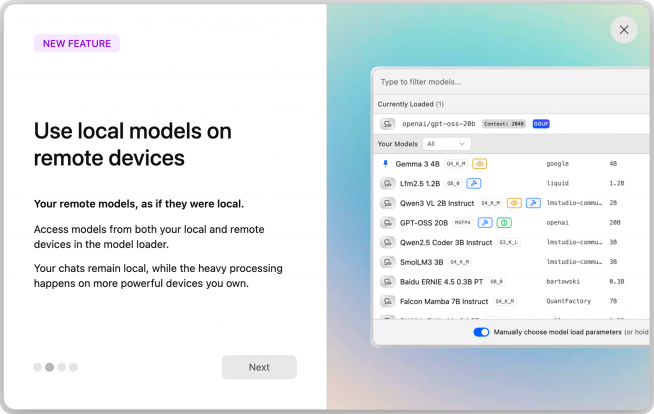 LM Studioのデスクトップアプリでは「Add a remote machine」(リモート端末の追加に相当)から数クリックで初期設定が完了します。ターミナルからも「lms login」で案内に従ってログインし、「lms link enable」を実行するだけで利用を始められます。公開インターネットへのポート開放や手動のポートフォワーディングは不要で、端末間の通信はすべて暗号化されるとしています。