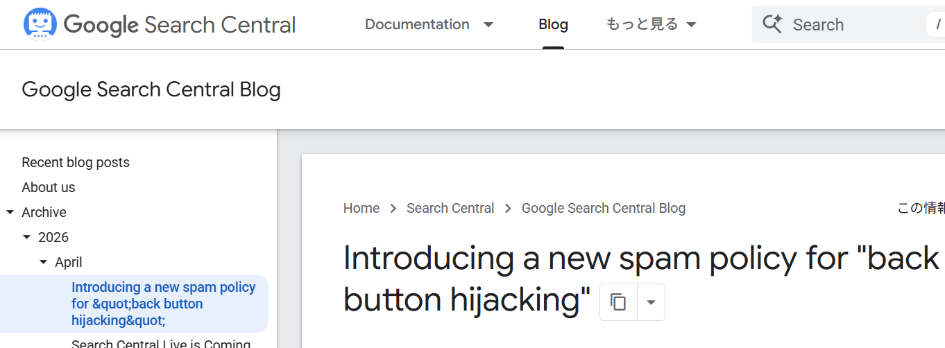 Googleは4月13日、スパムポリシーを拡大し、いわゆる「back button hijacking(戻るボタンハイジャック)」を「malicious practices」ポリシーの明示的な違反とすると発表しました。施行開始は2026年6月15日です。サイト運営者には約2か月の猶予が与えられます。