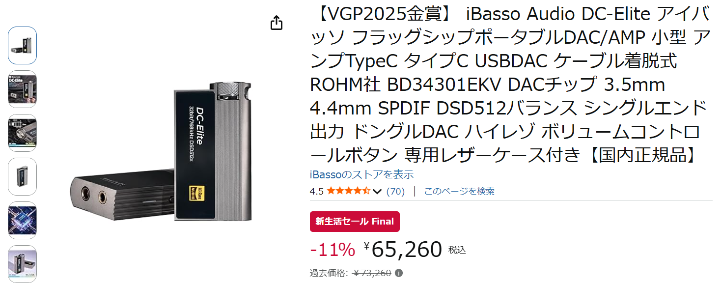 予告では10%オフでしたが、現在Amazonページを見ると11%オフで6万5260円となっています。