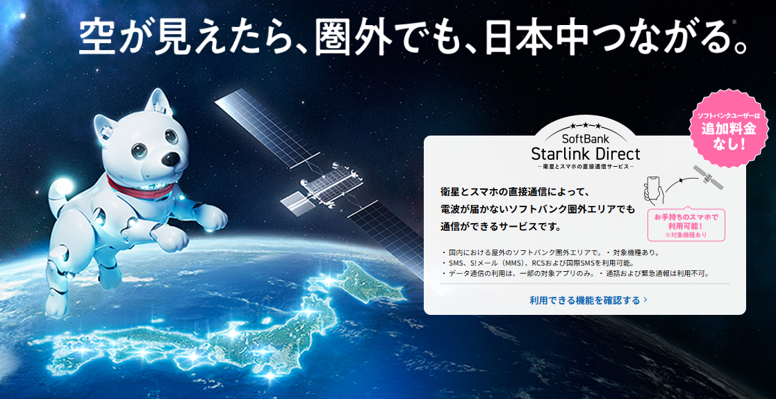 ソフトバンクが本日2026年4月10日、SpaceXの「Starlink」衛星とスマートフォンが直接つながる通信サービス「SoftBank Starlink Direct」の提供を開始しました。ソフトバンク・ワイモバイル・LINEMOの全ブランドが対象です。