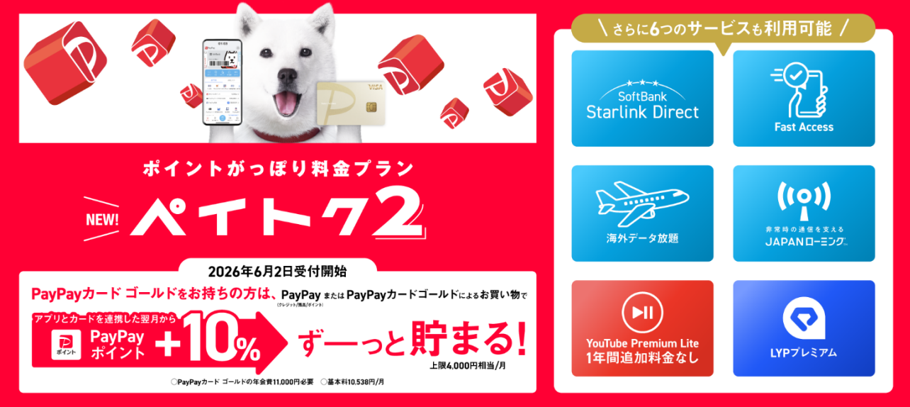 ソフトバンクは2026年4月10日、新料金プラン「ペイトク2」を6月2日から提供すると発表しました。データ無制限で月額1万538円(税込)。現行の「ペイトク無制限」からは値上げになりますが、その分サービスをガッツリ盛り込んできています。