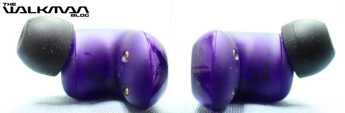 公開された画像を見ると、充電ケースやUSBトランシーバーを含む大部分に光沢のある半透明仕上げを採用しています。一方で、イヤホン内側など摩耗しやすい部分にはマット仕上げが使われているようです。ガラスのような透け感と紫の組み合わせで、かなり攻めたカラーリングに見えます。